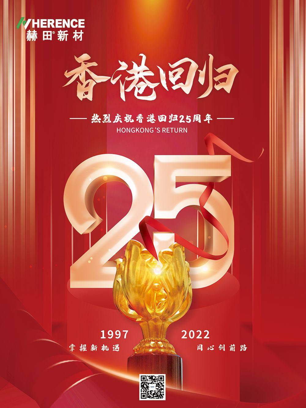 赫田新材全体员工热烈祝贺香港回归25周年,同时为祖国的繁荣富强而骄傲自豪。